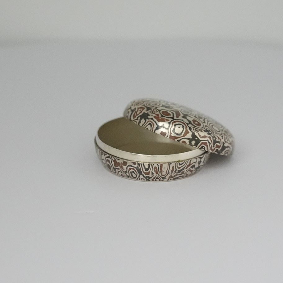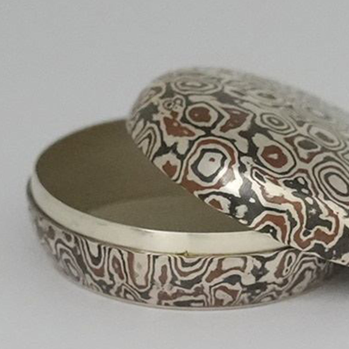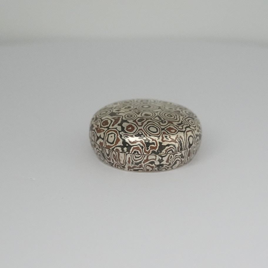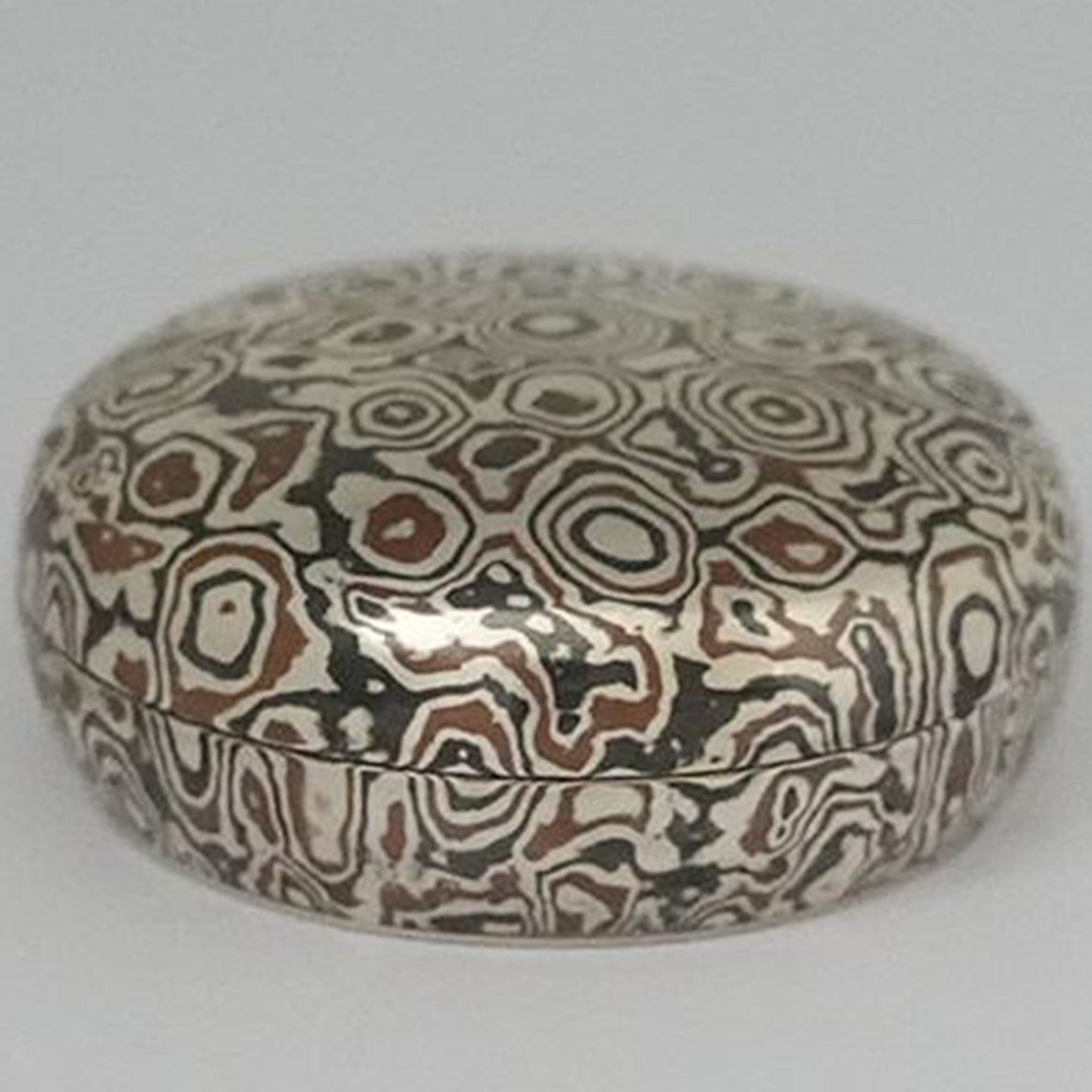 一つ一つが唯一無二の木目模様の杢目銅は、色の異なる金属を交互に重ね加熱圧着したものを金槌などで叩いて延ばし、彫りや捻りを加えて作り出されています。香は薫りが命なので蓋がぴったりと合う器が必然とされています。杢目銅の独特の美しさが故人を偲ぶ心に潤いを与えてくれることでしょう。