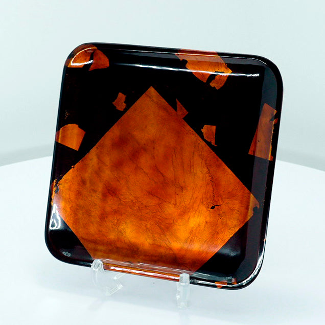 金箔を幾重にも重ねることで、琥珀色に数段階の明暗が生まれ、漆ならではの色艶が現れます。さらに使い込んでいくと、漆の透明度がを増していくため、金箔の色がより明るくなります。作り手から使い手へと経年変化を楽しめるという二重の喜びをもたらすでしょう。