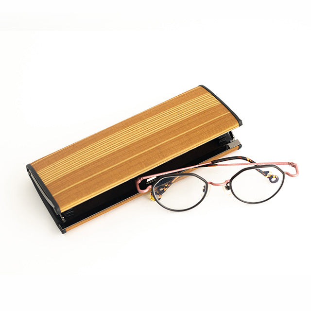 山つつじの葉を煮て染めためがねケースの温かみとシックな色合いをご堪能ください。*両側を押して開きます。