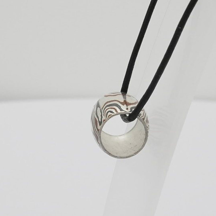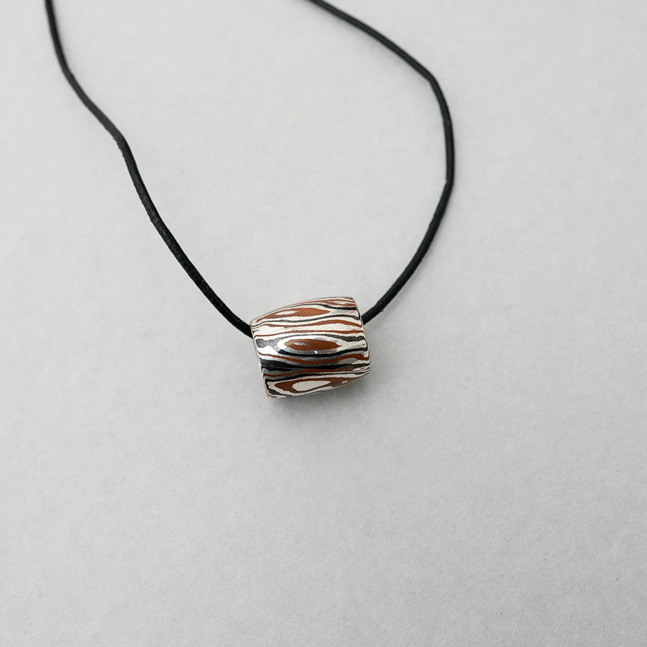 杢目銅による幾何学模様は、金属が交互に重ね合され加熱圧縮によって生まれています。女性でも男性でも、和服にも。おしゃれの幅が拡がりそうです。