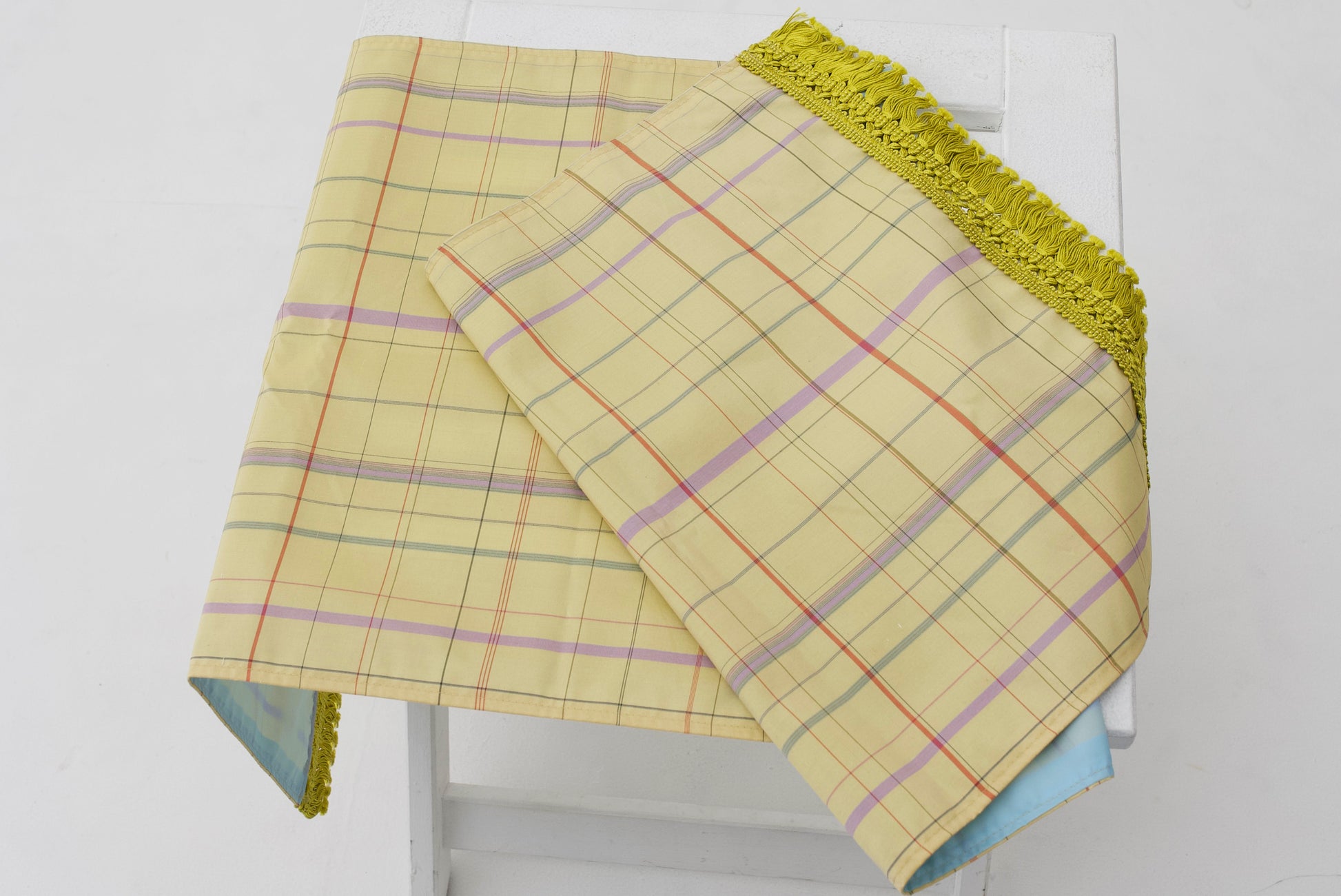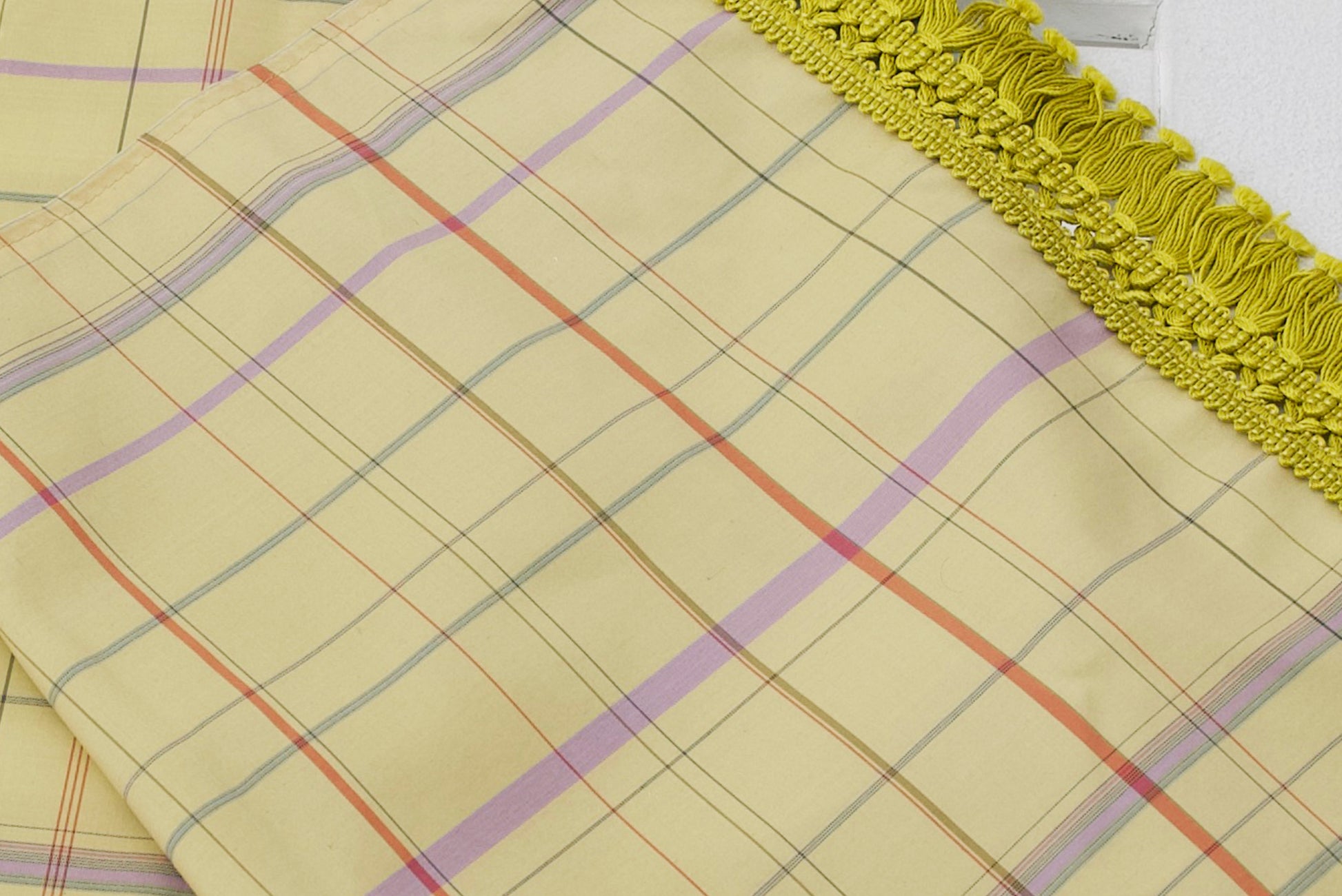 刈安や山つつじの葉を煮て染める秋田八丈ならではの黄色の色味は、春の陽だまりを彷彿させます。さらさらとした感触は万人に好かれ、光沢ある生地は華やぎを彩ります。